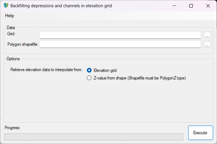 Interpolation from grid houdt in dat alleen gaten (nodata-values) worden dichtgeïnterpoleerd en dat dit gebeurt door in de directe omgeving te zoeken naar actieve cellen en hiertussen ruimtelijk te interpoleren.