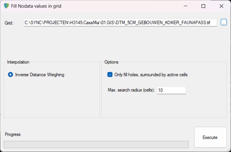 - Druk op ‘Execute’ om het proces te starten. Kies een locatie en naam voor het resultaatbestand