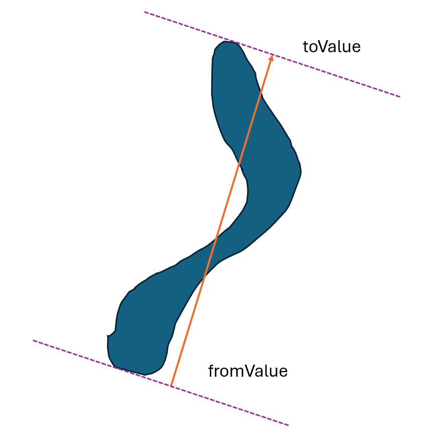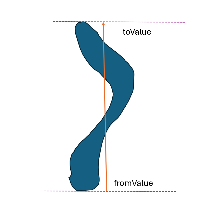 - De kleinste y-coördinaat associeren we nu met de van-waarde voor de gradient. De grootste y-coördinaat met de naar-waarde.