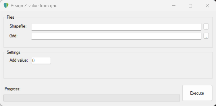 - Het pad naar de shapefile waaraan z-waarden moeten worden toegekend. Let op: dit moet een shapefile van het type PointZ, PolylineZ of PolygonZ zijn. Druk op de button <..> om te bladeren naar het gewenste bestand.