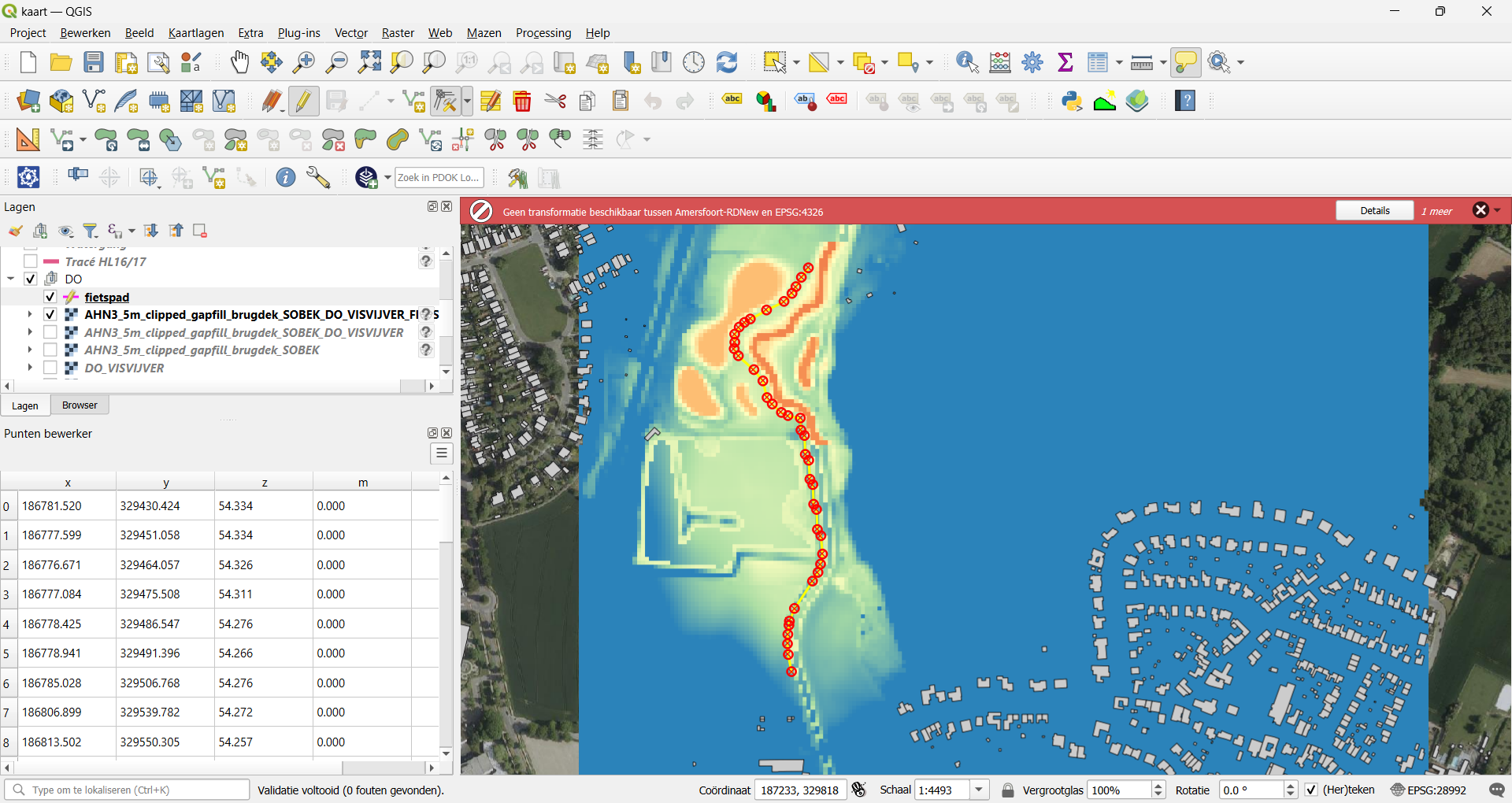 Z-waarden voor shapefile uit raster opvragen