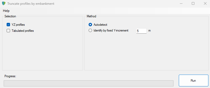 - A new form will be shown. Here, define which types of cross sections need to be truncated and which method to use.
